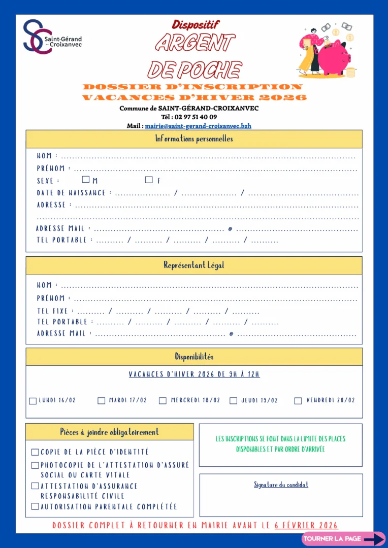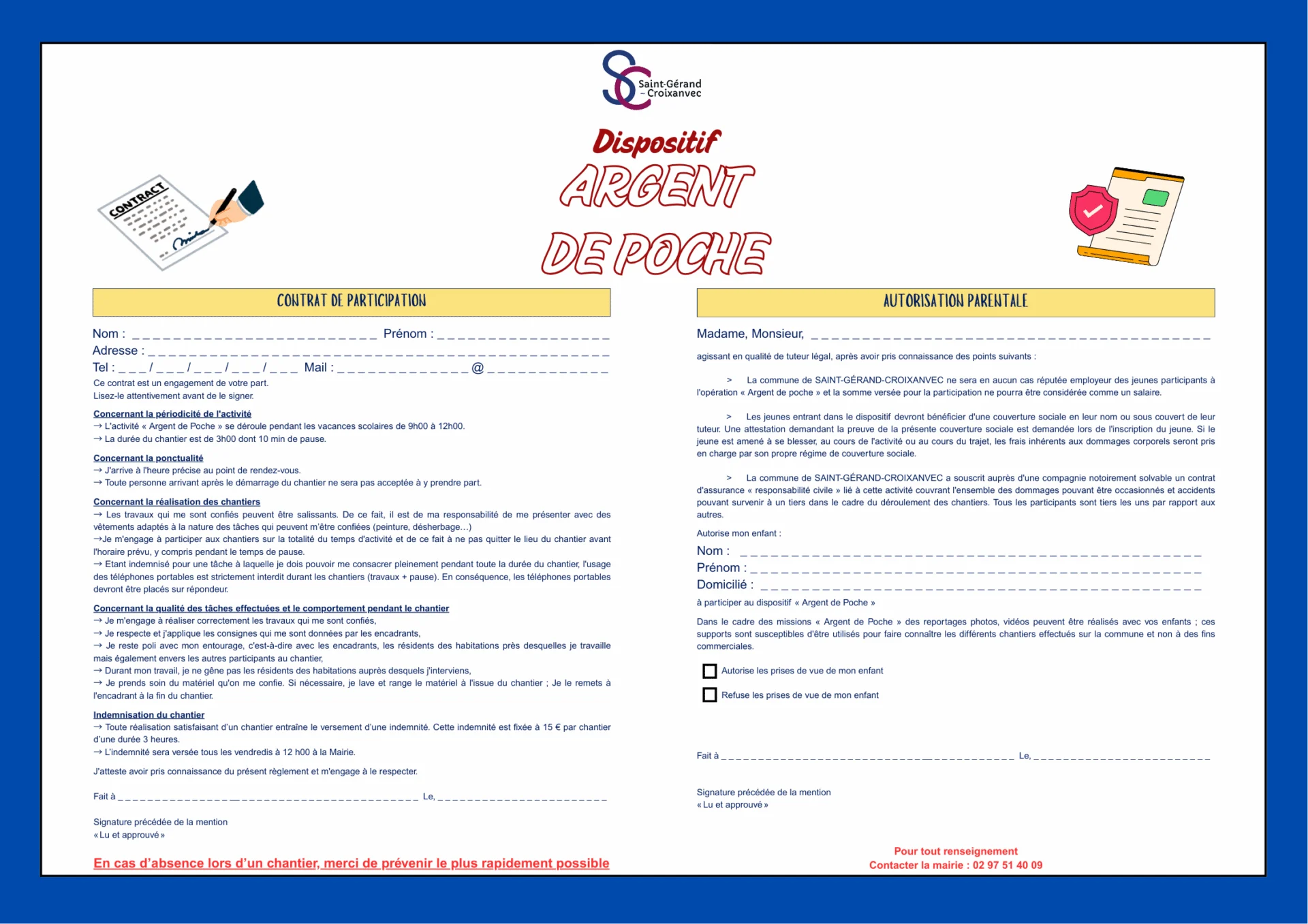 Dossier dinscription Argent de Poche                              Contrat de participation Autorisation parentale