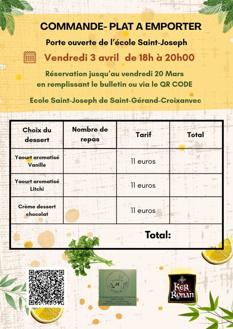 Portes Ouvertes de l’Ecole Saint-Joseph – Plat à Emporter