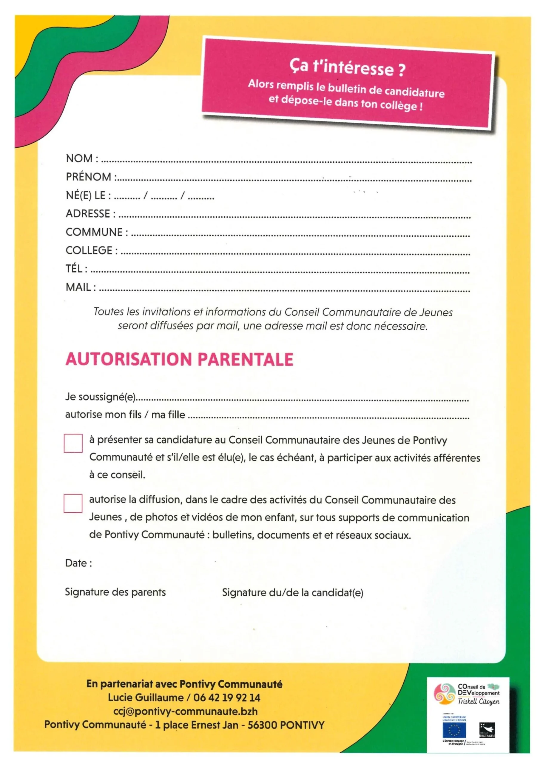 Conseil Communautaire des Jeunes 2026 – Pontivy Communauté